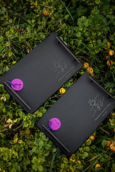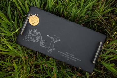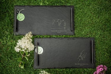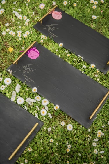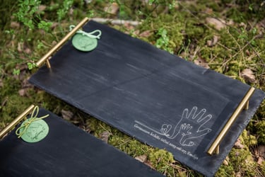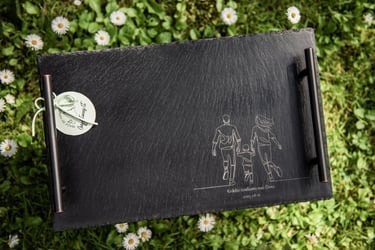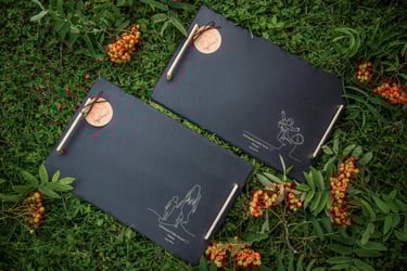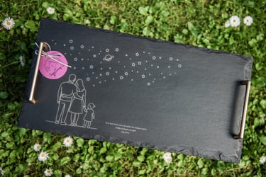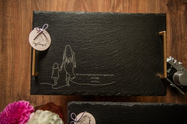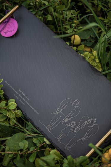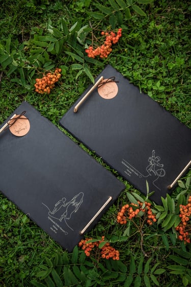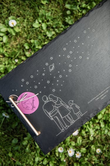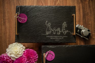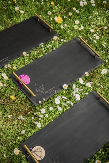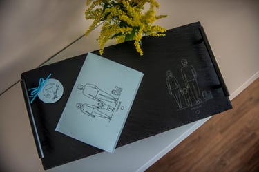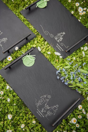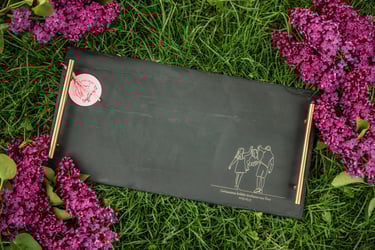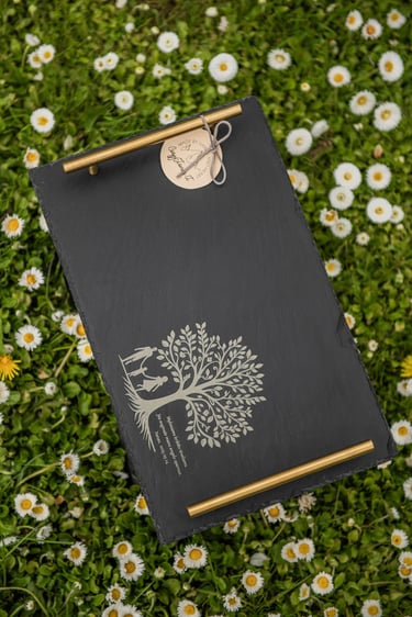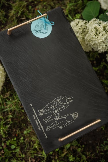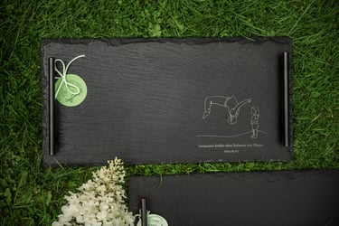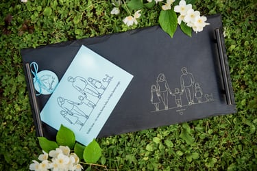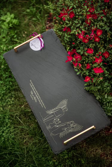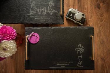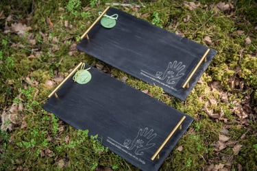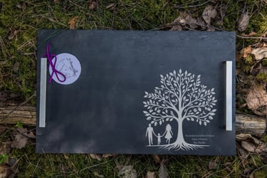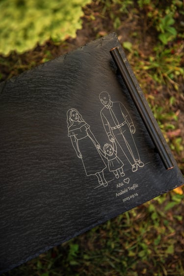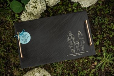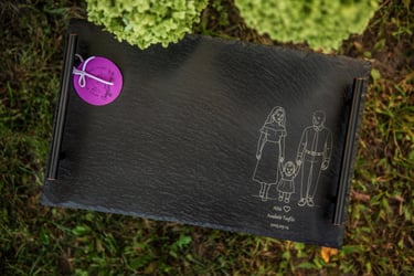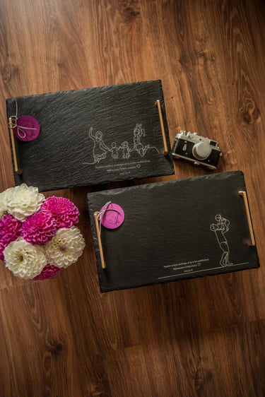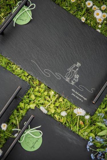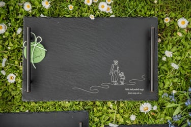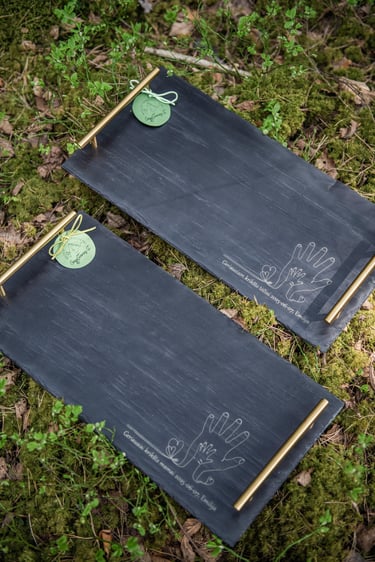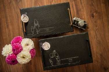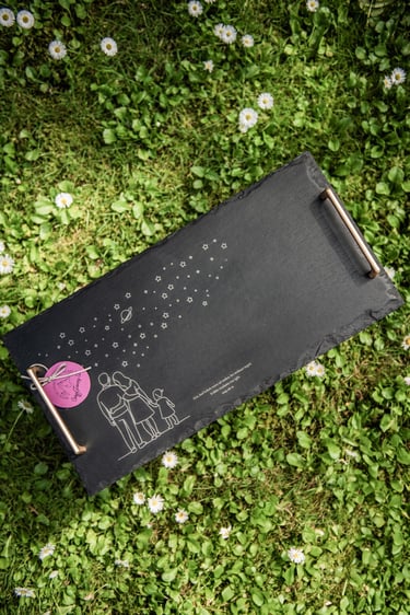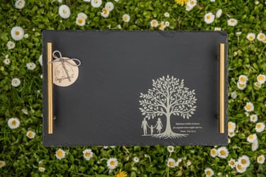Natūralaus akmens padėklai su išgraviruotais norimais žodžiais ir piešiniais – puikus būdas parodyti dėmesį ir padovanoti tokią dovaną, kuri tikrai bus ilgai naudojama ir primins jūsų šventę. Tai gali būti KVIETIMAI BŪSIMIEMS KRIKŠTO TĖVAMS, taip pat padėkos dovanos KRIKŠTATĖVIAMS, SENELIAMS, PROSENELIAMS bei kitiems svarbiems žmonėms. Galime įgyvendinti jūsų idėjas, o taip pat pasiūlyti savų. Galime pasiūlyti skirtingų atspalvių bei formų rankenėles – tai padeda priderinti dovaną prie namų interjero.