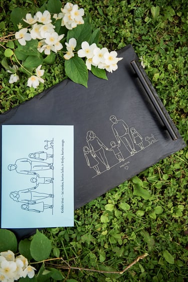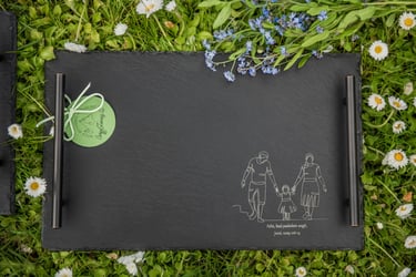 krikšto tėvams, seneliams, proseneliams ir kitiems svarbiems žmonėms. Populiariausios piešinių temos: suaugusieji, vedantys už rankos vaiką, įvairūs vaikų ir suaugusiųjų rankų motyvai, angeliukai, kūdikių pėdutės Taip pat piešiniai, susiję su dovanos gavėjų gyvenimu bei pomėgiais – visada rasime piešinį pagal Jūsų idėją arba paruošime eskizą pagal nuotrauką. Norimą tekstą, datą, bei vardus galima graviruoti tiek vienoje, tiek kitoje padėklo pusėje, o taip pat galime pridėti atspausdintą atviruką.